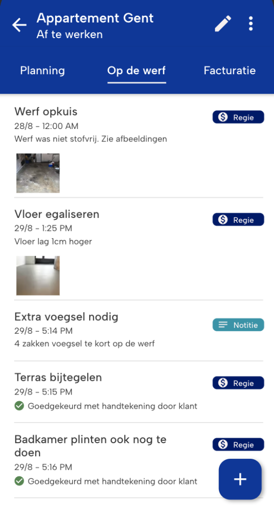 - Voeg foto’s, notities, to do’s.. toe aan elke werf