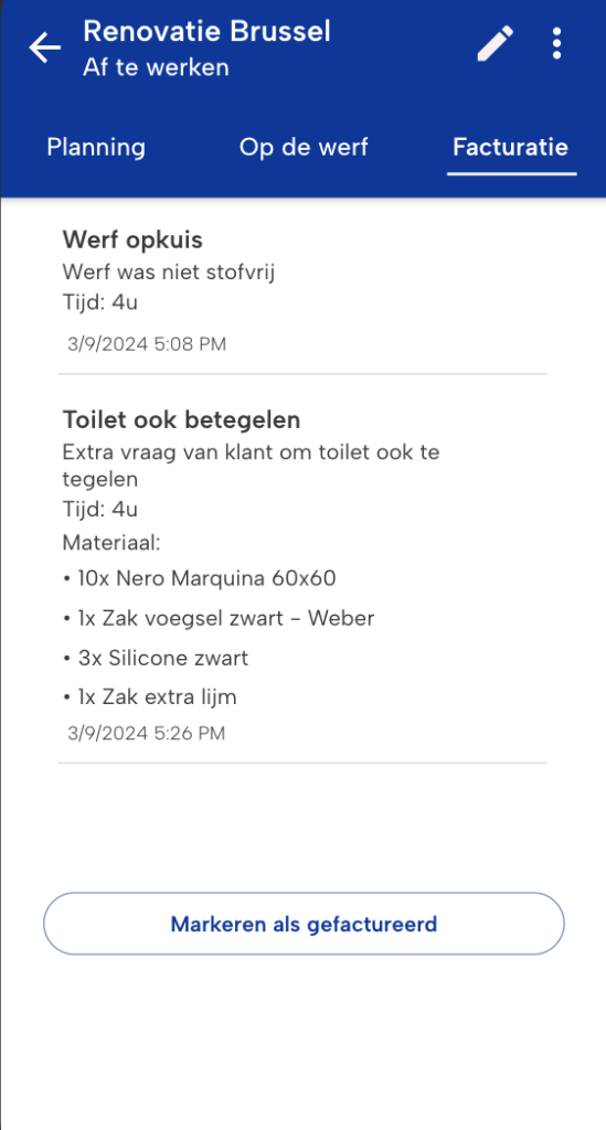 - Allemaal onmiddellijk opgelijst, klaar om te factureren