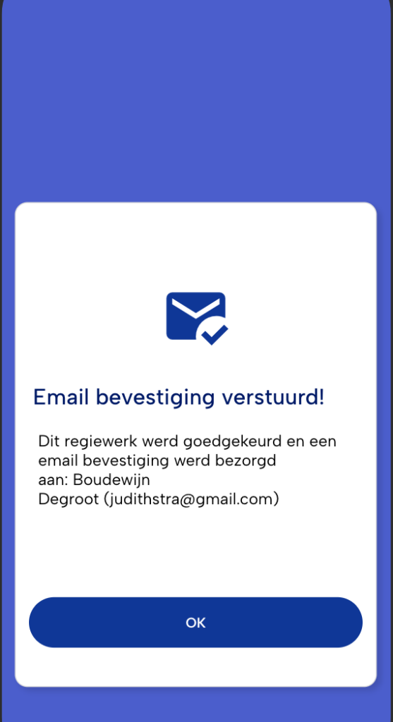 - De goedkeuring wordt ook onmiddellijk zichtbaar in de app